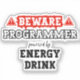 A frase "Cuidado: Programador Acionado por Energia Bebida" captura a fundição noturna com uma dose de humor. Um adesivo espirituoso perfeito para programadores, desenvolvedores de software, codificadores e profissionais de TI que sobrevivem em bebidas energéticas enquanto depuram e constroem o futuro. Excelente para estudantes de tecnologia, equipes de arranque ou qualquer pessoa que conheça o ritmo da vida de programação.
