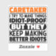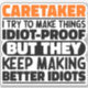 O Engraçado Guardião Diz "Cuidador Eu Tento Fazer As Coisas Provas Idiotas Mas Eles Mantêm O Fazer Melhor Idiotas". Agarre esta design Engraçada como presentes engraçados para uma mãe, pai ou amigo espetacular.