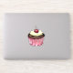 O Sticker ilustra detalhadamente um cupcake de chocolate com glacé de chocolate, uma espiral de chantilly e uma cereja no topo - faminto?