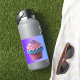 Apenas um enorme cupcake de baunilha com glacé rosa, azul e roxo, e borrifadas, em um fundo de gradiente roxo a azul! Meu Deus!