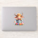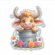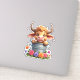 Adesivo Cute Baby Highland Cow With flowers Calf Animal co