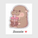 Adesivo Cute Baby Hippo Bebendo Boba Tea