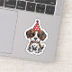Celebrate with this adorable puppy sticker! It features a cute brown, black and white dog (looks like a beagle puppy or a hunting dog)wearing a red polka dot festive hat. With big puppy eyes and a happy expression, this illustration is perfect for dog lovers of all ages. Use it for birthday invitations, greeting cards, party favors, or to decorate your planner and laptop. It's a sweet way to add a clutch touch to any celebration!