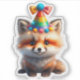 Celebrate in style with this adorable baby fox sticker! This cheerful design features a cute woodland fox wearing a vibrant rainbow party hat topped with playful pom-poms. With its sparkling eyes and magical vibe, this little fox is ready to bring joy to any birthday celebration.