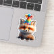 Adesivo Cute Birthday Fox with Rainbow Party Hat Sticker