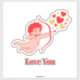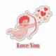 Cupido de desenho animado vibrante com asas, um vestido vermelho e um arco voa através de um fundo vermelho cheio de corações. Perfeito para projetos temáticos de Dia dos Namorados, romance e família.