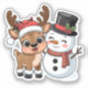 “An adorable holiday illustration featuring a cheerful reindeer and a smiling snowman, perfect for spreading festive winter cheer.” 🎄❄️