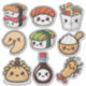 Adorable Kawaii food stickers. This sheet includes cute Chinese food such as sushi rolls, cartoon of Chinese food, a fortune cookie, a scoop of rice, a wonton, a bottle of soy sauce and a tempura shrimp.