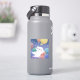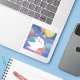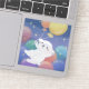 A cute fluffy white puppy with colorful balloons in night sky filled with stars