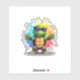 Adesivo Cute Turtle Wearing Sunglasses Paint Splash Sea An