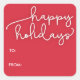 Uma pegada moderna e nova em um adesivo com etiqueta de presente com um moderno guião caprichoso saudação de "feriados felizes". Personalize este cartão com seu próprio texto ou use como etiqueta de presente e use o texto "para" e "de".