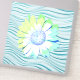 Esta é minha trabalho de arte gráfica original de uma silhueta de flores margaridas em tons azuis e verdes aqua em um fundo de faixa de onda estilo vintage e colocada em um adesivo grande. Este adesivo tem 8 polegadas por 8 polegadas, mas você pode mudar o tamanho para maior ou menor, se desejar. Trata-se de um produto de qualidade que não deixará colado nas suas coisas e impresso com tintas que não desaparecerão. Coloque-os em qualquer coisa que você queira personalizar e decorar ou dar como presente.