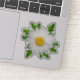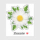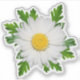 vinheta vinílica de 3" x 3" com corte personalizado, com uma imagem de uma bela margarida branca com folhas verdes e peludas. Veja a etiqueta redonda correspondente, a etiqueta favorita e a etiqueta. Ver toda a coleção de adesivos do Dia das Mães nos CONVITES | Seção Stickers & Labels
