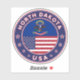 Design de Dacota do Norte com bandeira de Dacota do Norte e bandeira dos Estados Unidos, forma arredondada. vinheta de carro da Dakota do Norte, vinheta de bagagem da Dakota do Norte, vinheta de viagem da Dakota do Norte,