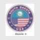 Design de Dakota do Sul com bandeira de Dakota do Sul e bandeira dos Estados Unidos, forma arredondada. vinheta de Dakota do Sul, autocolante de carro de Dakota do Sul, autocolante de bagagem de Dakota do Sul, viagem de Dakota do Sul,
