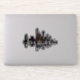 Uma obra de arte ao estilo da rua que mostra a cidade de Dallas, Texas coberta em grafite com um reflexo de tinta preta.