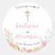 Adesivo de batismo redondo cor-de-rosa