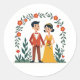 Inclui 20 adesivos pequenos em uma folha. Adesivo encantador com uma ilustração charmosa de um casal sob um arco floral, perfeito para decoração de casamento e temas românticos.