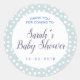 Adesivo de chá de fraldas de polkadot azul e branco. Personalizar com seu nome e data