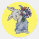Um adorável coelho segurando um buquê de flores é apresentado neste adesivo redondo para a Primavera e a Páscoa. Use para aqueles envios especiais de Páscoa, decoração, scrapbooking e mais. Colorido e muito fofo!
