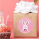 Um belo adesivo coelho com um adorável coelho branco com orelhas bolinhas. Personalize com sua mensagem especial. Excelente para aniversários e eventos de Páscoa.