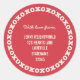 Definir texto circular que consiste em x's e o's forma um quadro para o seu texto personalizado. Vá para "Personalizar" se quiser alterar a fonte/mover o texto. Você também pode escolher uma forma de adesivo diferente - e então ampliar/afastar a imagem de acordo com o zoom até que esteja feliz com o ajustado dentro dos limites do impressão (na visualização design). Disponível em outros designs semelhantes, assim como em outros produtos - placas, cartões com fotos, etc.