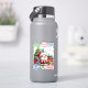 Um belo adesivo de Natal mostra Papais noeis alegres segurando uma caneca de vapor cercada de presentes coloridos e árvores verdes. Os selos festivos amplificam o espírito de férias, convidando o calor e a alegria durante a alegre temporada de doações.