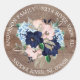 Adesivo de etiqueta de endereço redondo de madeira rústica exclusiva com um lindo buquê de flores azuis marinho e rosa.