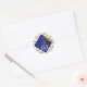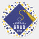 Graduação criativa felicita o partido por etiquetas, adesivos para presentes ou selos de envelopes com boné azul com uma fita de ouro sobre fundo de confete. Editar texto para adicionar o nome do formando e o ano de classe do mais velho.