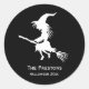 Este adesivo de Halloween fofo é acentuado com uma bruxa voando em uma vassoura e é fácil de personalizar com seu nome e a data.