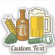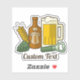 Ilustração de cerveja. Frasco, vidro, abridor, saltos e cevada. Custom Text.