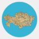 Um mapa do Cazaquistão está centrado sobre um fundo de cor de bandeira neste adesivo. Fiquem com os valores do Cazaquistão!