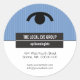 Um olho preto estilizado se senta sobre um sutil fundo azul riscado neste adesivo. Perfeito para optometristas, optometristas, ópticos ou qualquer negócio que trate dos olhos. Disponível em cores alternativas com produtos correspondentes. com