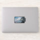 Um adesivo em forma de bateria com uma bela vista do topo de uma cachoeira com o lembrete para recarregar sua própria bateria.