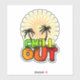 Arte gráfica de uma silhueta de duas palmeiras com o sol brilhando atrás e as palavras Chill Out