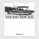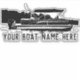 Este adesivo de estilo cortado pela morte é a maneira perfeita de criar o seu próprio decal de barco para rotular a engrenagem do seu barco ou fazer um adesivo para o para-choques para decorar o seu carro ou campista. Apresenta uma ilustração a preto e branco de um barco de pontoon num lago com o seu próprio texto personalizado abaixo. Personalize isto com o nome do seu barco ou do seu lago favorito. Este adesivo faz um excelente pequeno presente para os proprietários de barcos.