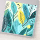 Ilustração de folhas e agulhas de pinheiros em verde-azul e amarelo