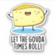 Deixe o Gouda Times Roll Funny Cheese Pun apresentar um doce pedaço de queijo gouda pronto para deixar os bons tempos rolar. Presente perfeito para a família e amigos que adoram peitos fofos de queijo.