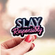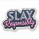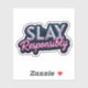 Adicione um charme atrevido ao seu laptop, planejador ou garrafa de água com este adesivo ousado Derrote com Responsabilidade. Com letras metálicas retrô divertidas sobre um fundo estrelado, este design se destaca em qualquer superfície. Impresso em material durável e de alta qualidade, perfeito para uso diário. Ótimo para presentear sua chefe favorita, criativa ou amante de adesivos. Derrote seu estilo mantendo a classe.
