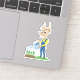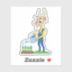 Adesivo personalizado de vinil com uma ilustração de uma cabritinha fofa jardineira, que está regando seus vegetais com um regador, motivos de desenhos animados temáticos de jardinagem para crianças
