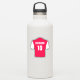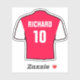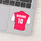 Vinheta de futebol. Camisa de futebol design em vermelho e branco. Personalizado com sua escolha de nome e número. adesivo do laptop.