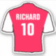 Adesivo Design de camisa de futebol em vermelho e branco.