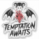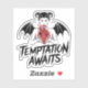 Libere a elegância escura com este design gótico que apresenta um demônio sedutor com chifres enrolados, asas semelhantes a morcegos, e um coração em chamas em suas garras. Acentuado pela frase "Aguardas de Tentação" em negros, irados, este design é perfeito para fãs de estética suja e sobrenatural.