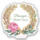 Um belo adesivo de vinilo com uma peônia rosa em uma deliciosa faixa de louros com sotaques dourados. Perfeito para personalizar seu chá de panela ou favores de casamento e decoração. Personalize com seu nome de noiva e noiva ou noiva e data de casamento ou chá.