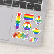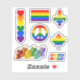 Vinhetas personalizadas com vários designs nas cores da bandeira do orgulho LGBT; as formas incluídas: um sinal de paz, corações, estrelas, uma folha de mapa, uma folha de flur-de-lis, seis dragões coloridos e o texto "orgulho"