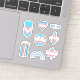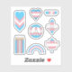 Vinhetas personalizadas com vários designs nas cores da bandeira do orgulho transgénero; as formas incluídas: um sinal de paz, corações, estrelas, uma folha de mapa, uma folha de flur-de-lis, lápis, e o orgulho do texto