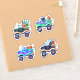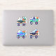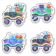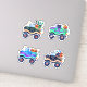 Embalagem de adesivos de Halloween com uma coleção de caminhões monstros assustadores e divertidos com fantasmas, abóboras, gatos assustadores e monstros Frankenstein.