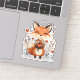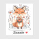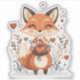 Uma raposa sorridente segura um buquê de flores e corações neste lindo design de núcleo de chaleira.