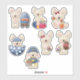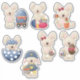 Sete adoráveis coelhos brancos de Páscoa com orelhas de disquete.