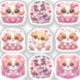Cães bonitos celebrando seu Dia de os namorados. Vinhetas também decoradas com flores e corações no estilo Kawaii, presentes de excelente para qualquer pessoa que ame cachorros e crianças também.
